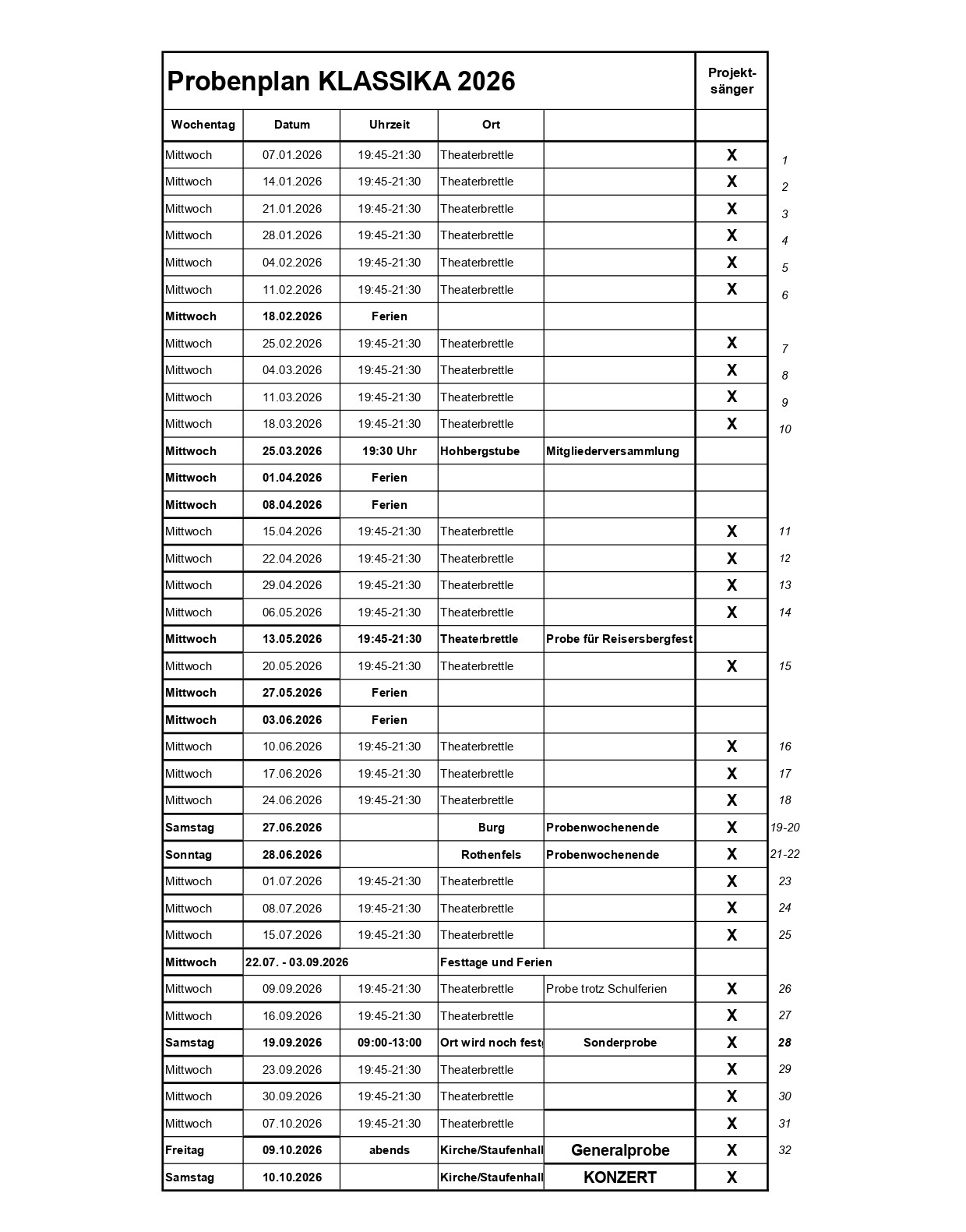 o Probenwochenende: 27.-28. Juni 2026, Burg Rothenfels