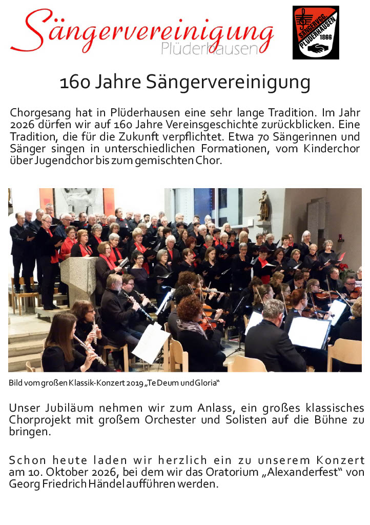 Im Jahr 2026 darf die Sängervereinigung auf 160 Jahre Vereinsgeschichte zurückblicken.
