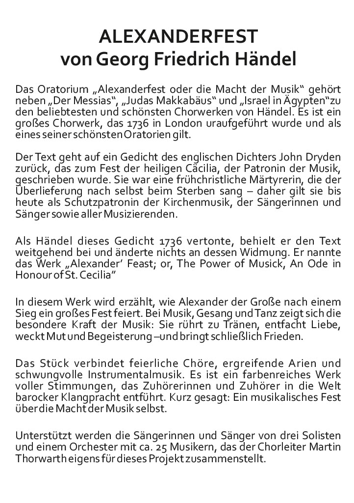 wir das Oratorium "Alexanderfest oder die Macht der Musik" von Georg Friedrich Händel