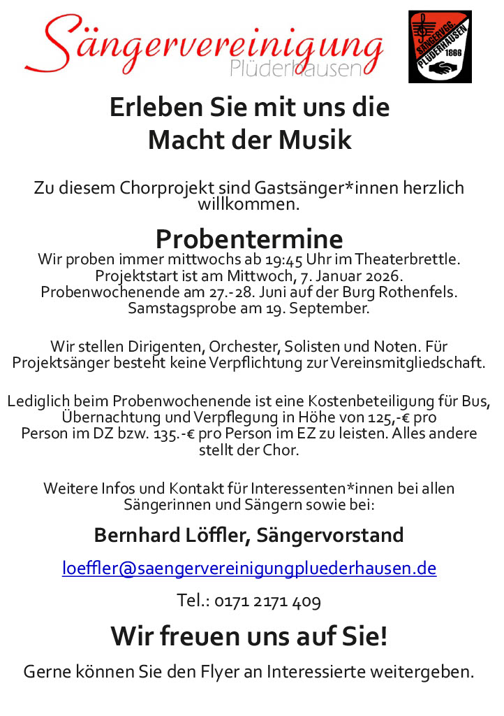 ist für Projektsängerinnen und Projektsänger nicht erforderlich.