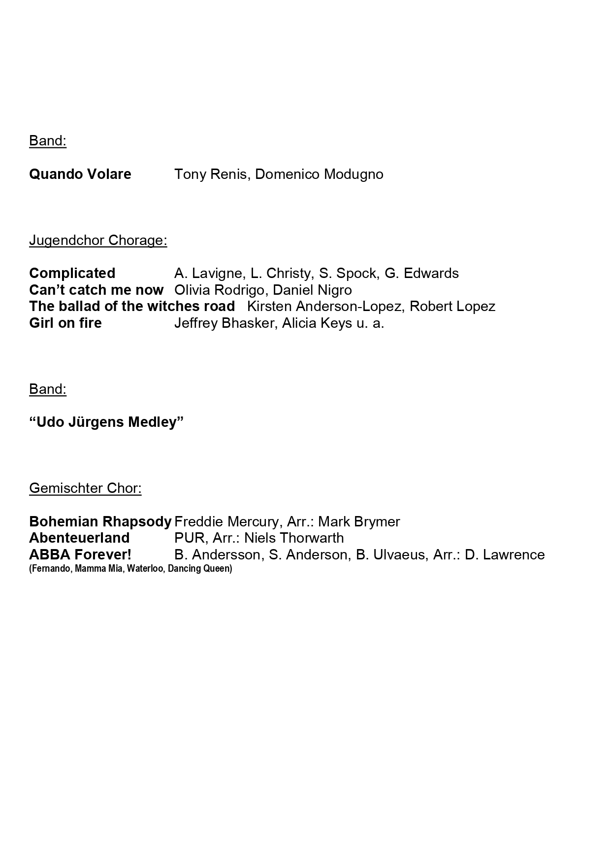 und eine Mischung aus Vorträgen von Kinderchor, Jugendchor, Männerchor, Gemischtem Chor, Instrumentalvorträgen